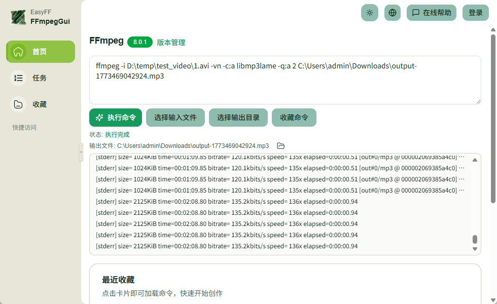 EasyFF 是一个桌面端 FFmpeg 图形化工具。它把常见的命令行媒体处理能力封装成可视化操作,目标是让用户在不记忆复杂参数的前提下,快速完成音视频处理任务。